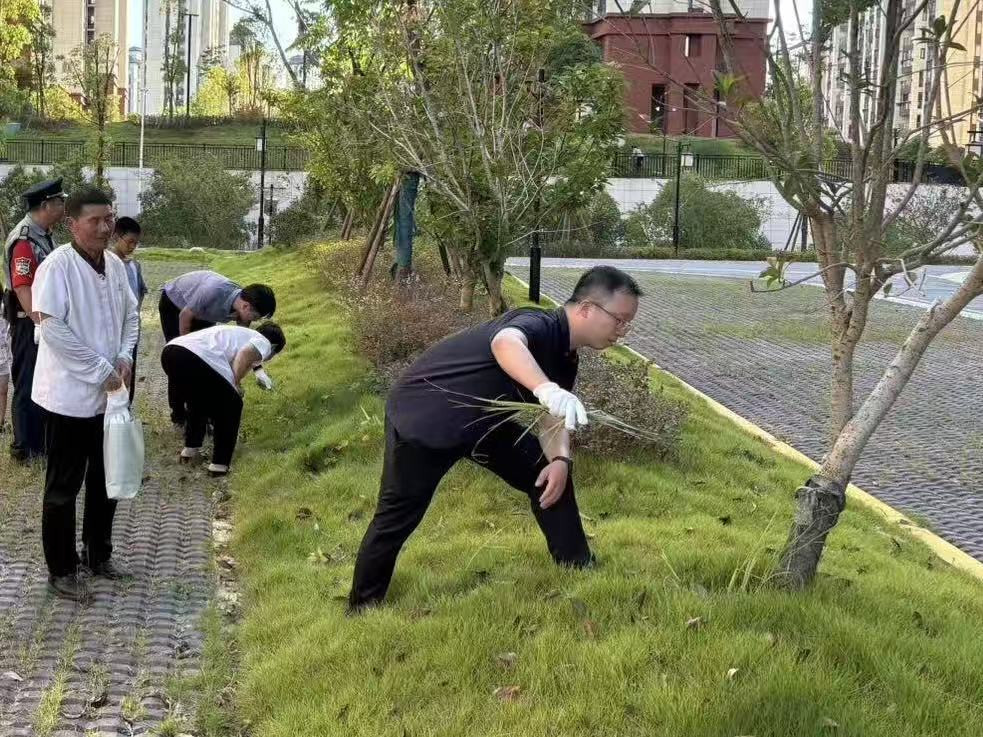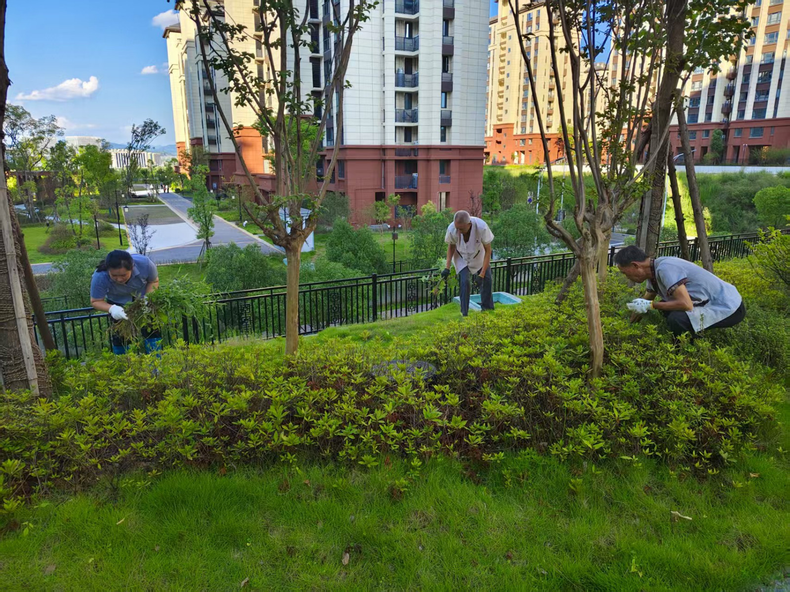 此次行動(dòng)中,保安、保潔、客服、工程等多個(gè)崗位共計30名工作人員主動(dòng)請纓,化身“除草衛士”。大家頂著(zhù)烈日,分工協(xié)作,有的彎腰拔除雜草,有的清理枯枝落葉,不放過(guò)任何一個(gè)衛生死角。因為在每個(gè)人心中,都藏著(zhù)一個(gè)共同的目標:讓小區環(huán)境更整潔,讓業(yè)主住得更舒心。